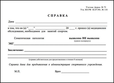 Содержание справки для занятий спортом