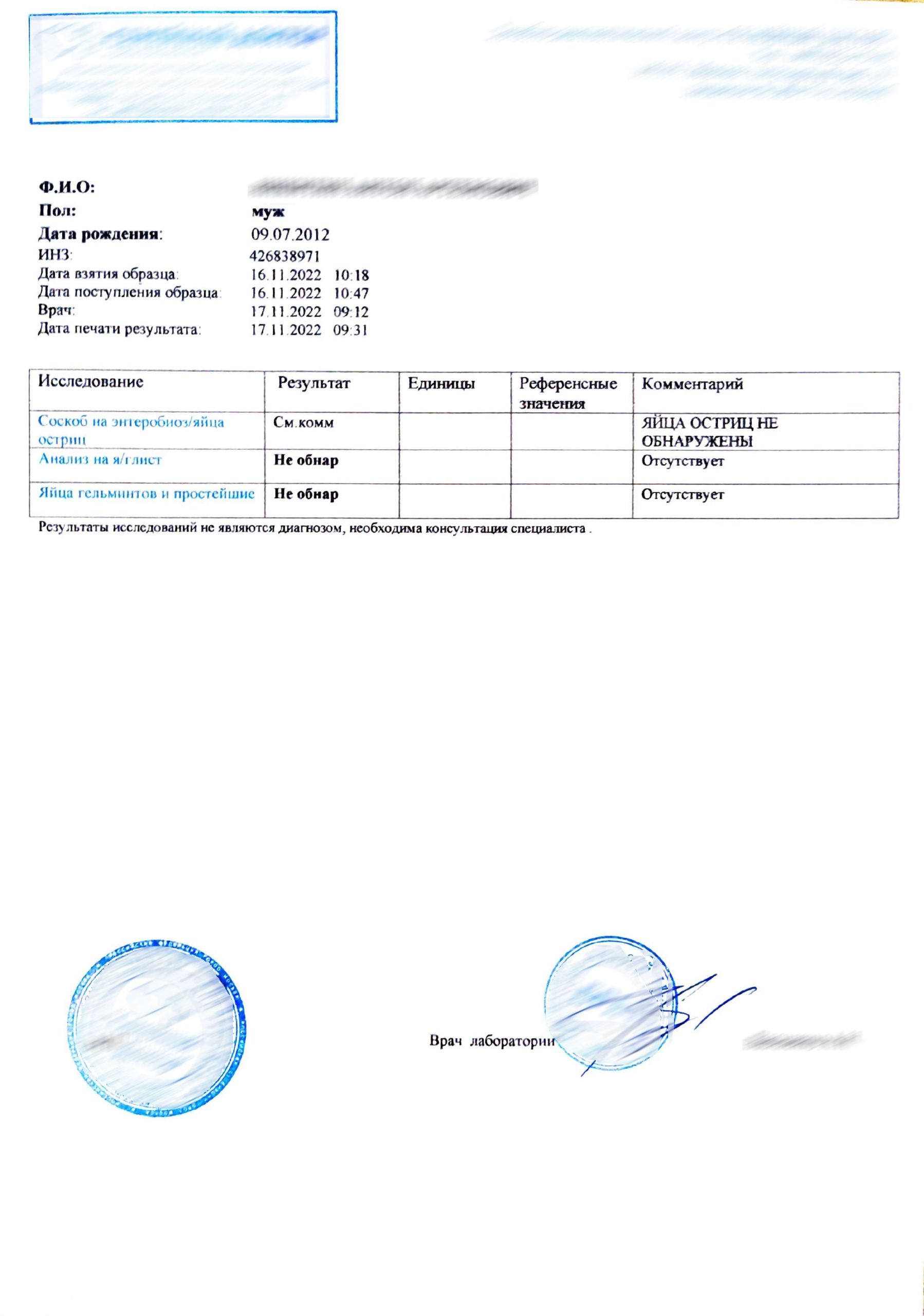 Оформляли ребёнка в детский сад. В поликлинике очередь на соскоб — 2 недели. В ИзиМед вызвала лаборанта на дом. Утром до горшка сделали забор, через день уже была готова справка с синей печатью. Курьер привёз документ вечером. В садике справку приняли, ребёнка зачислили без проблем. Спасибо, что не пришлось сидеть в очередях с малышом!