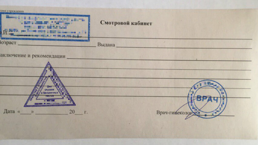 Справка от гинеколога